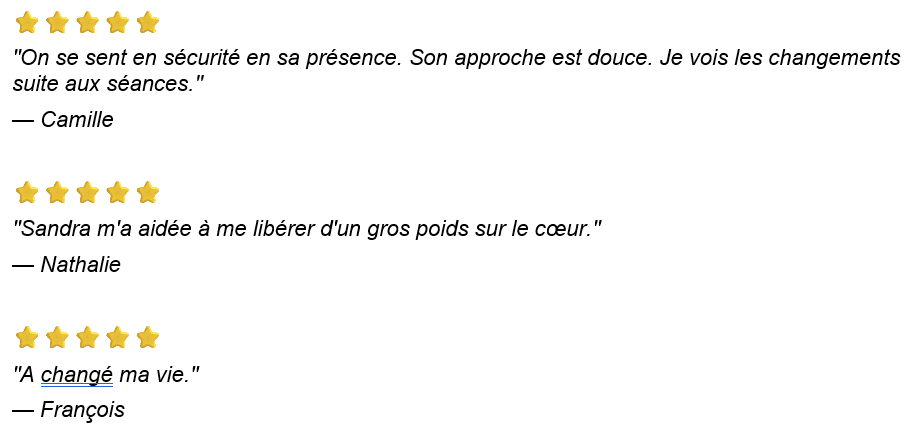 J’accompagne les personnes marquées par des blessures émotionnelles ou des traumatismes à comprendre leur histoire, s’en libérer et avancer avec plus de sérénité.